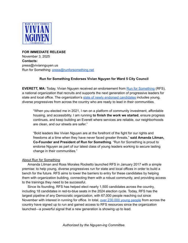 Home Platform Track Record My First Term (2022-2023) Food Resources Press Home Platform Track Record My First Term (2022-2023) Food Resources Press < Back to Press "Run for Something" Endorsement 2025